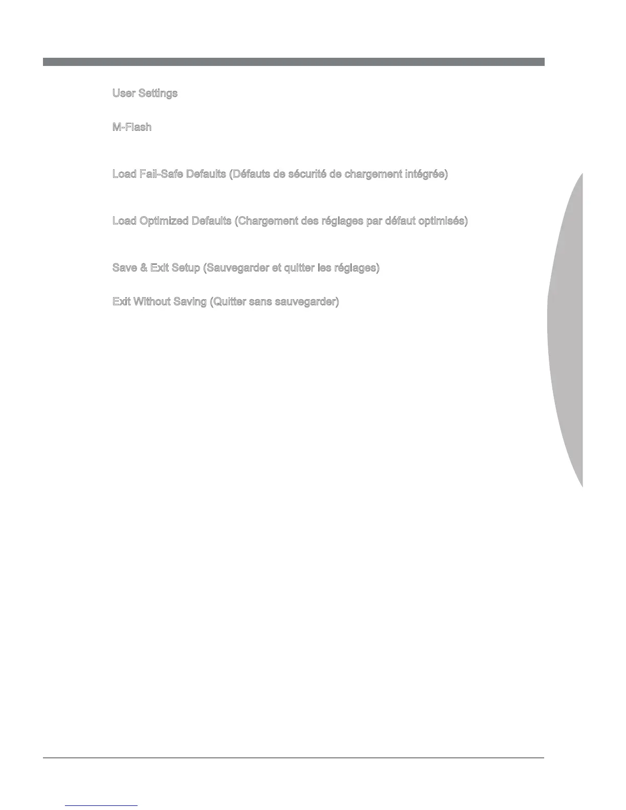 Utilisez ce menu pour conserver/ charger vos réglages à/ de CMOS pour le BIOS.