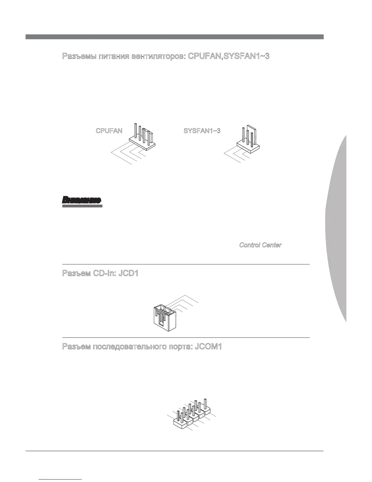 Разъемы питания вентиляторов: CPUFAN,SYSFAN1~3