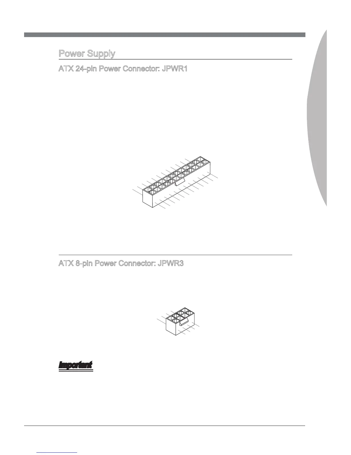24-pin power supply, make sure the plug of the power supply is inserted in the proper