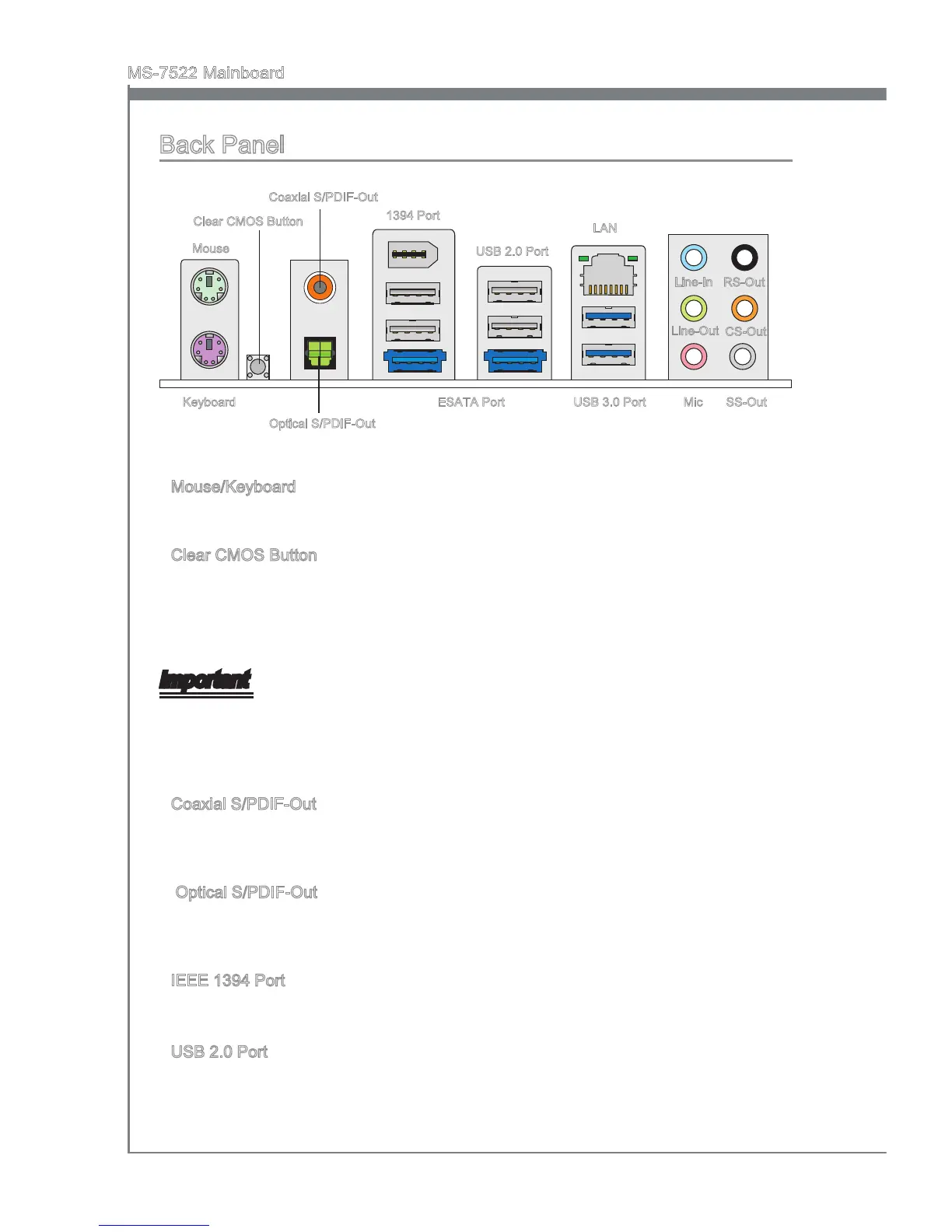The IEEE 1394 port on the back panel provides connection to IEEE 1394 devices.