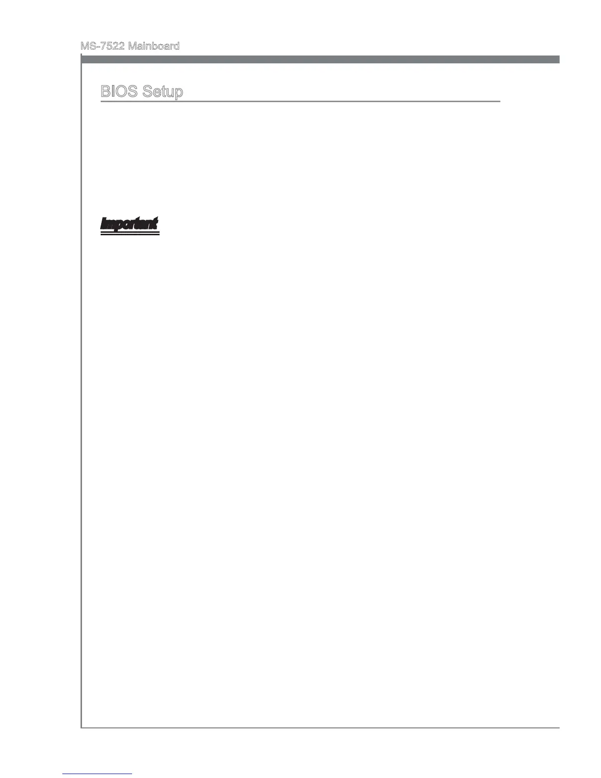 The items under each BIOS category described in this chapter are under continuous