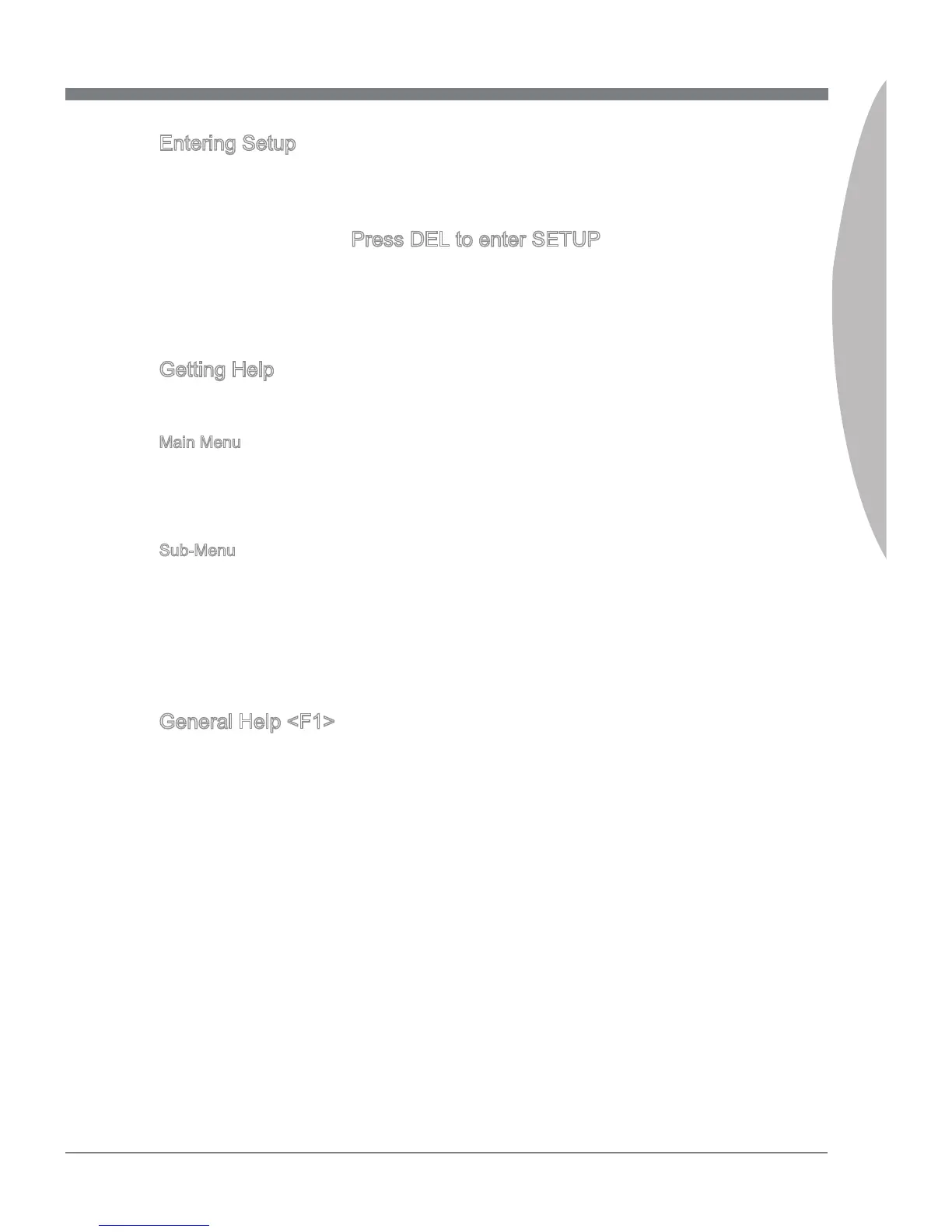 use and the possible selections for the highlighted item. Press <Esc> to exit the Help