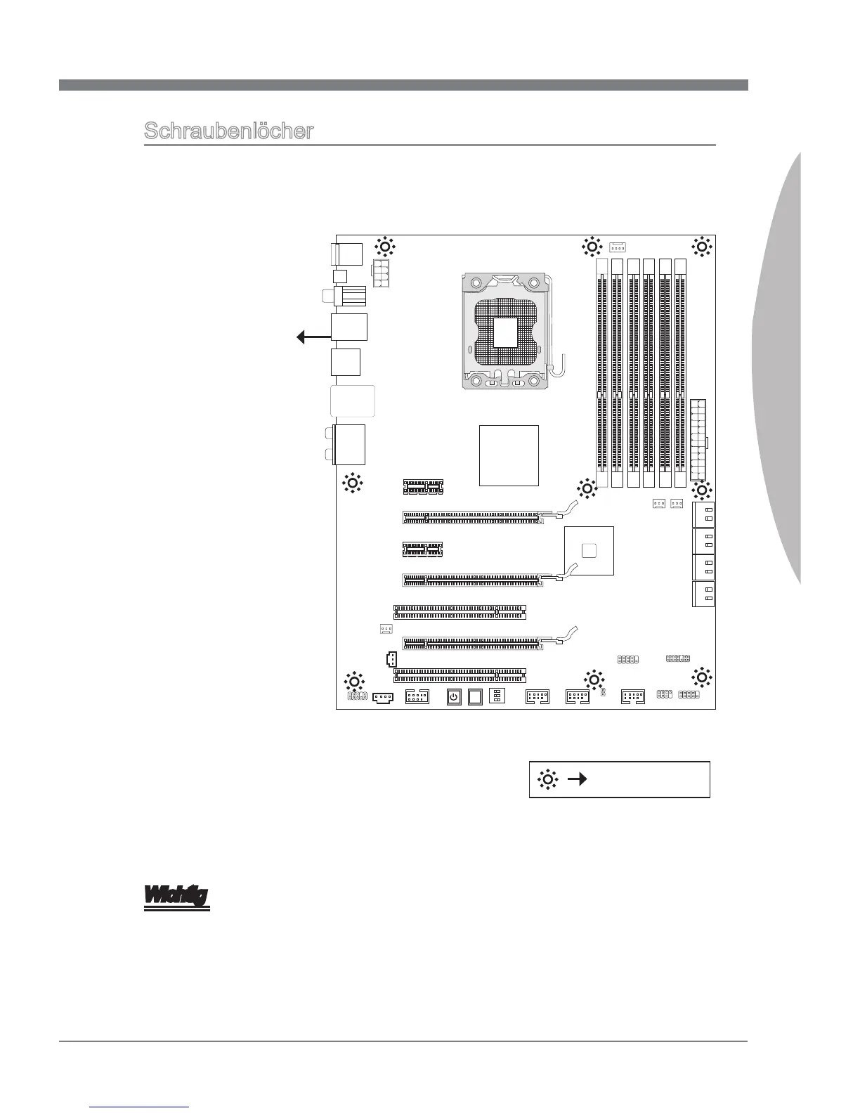 in der korrekten Richtung setzen. Die Standorte von Schraubenlöchern auf dem Main-