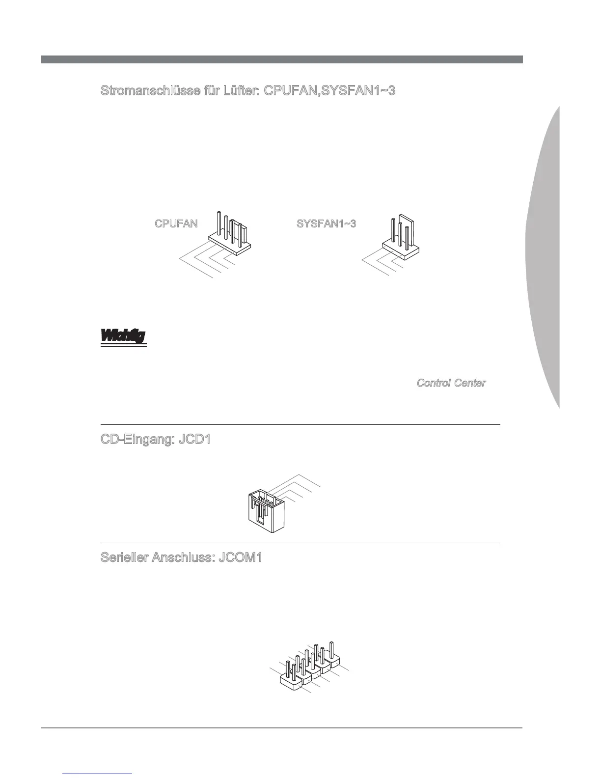 Stromanschlüsse für Lüfter: CPUFAN,SYSFAN1~3