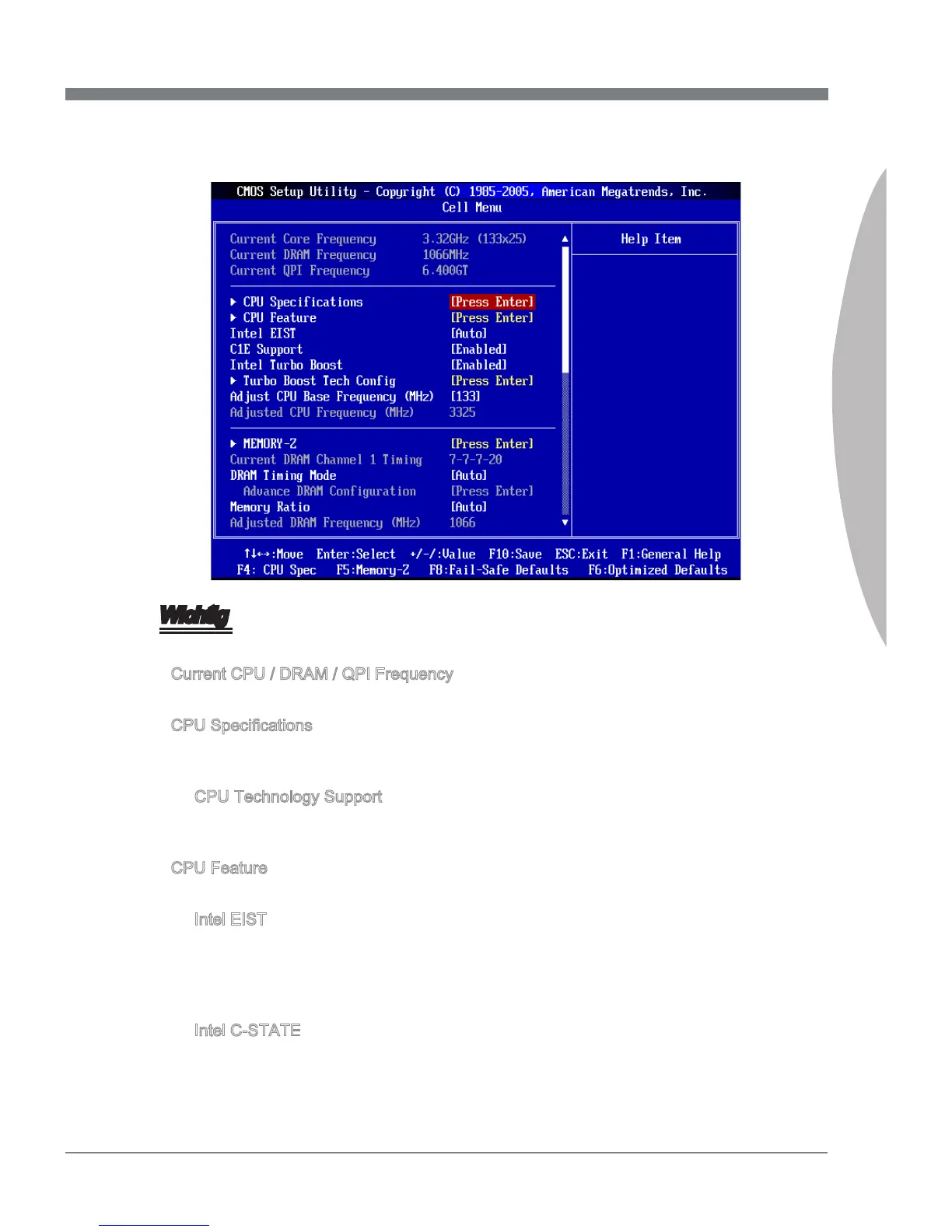 Zeigt die derzeitige Frequenz der CPU, Speicher und QPI. Nur Anzeige.