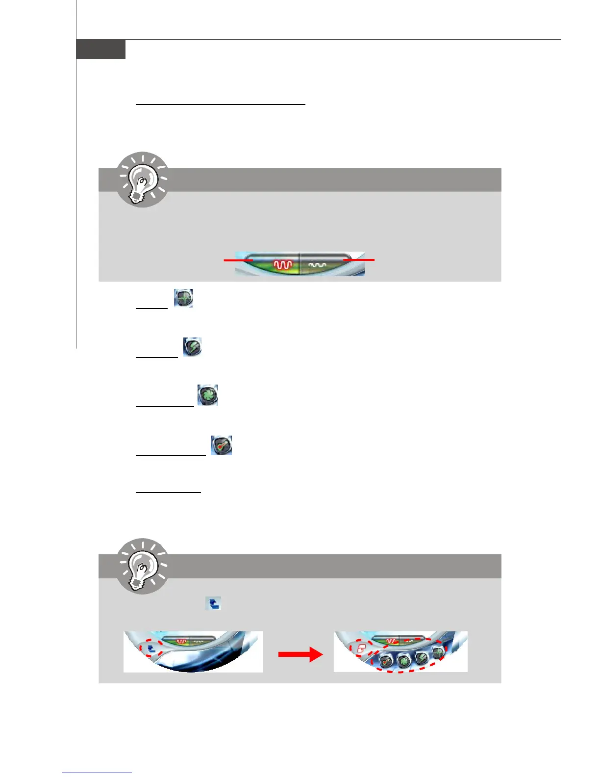 Click on the icon , the clock, voltage, fan, and temperature buttons will