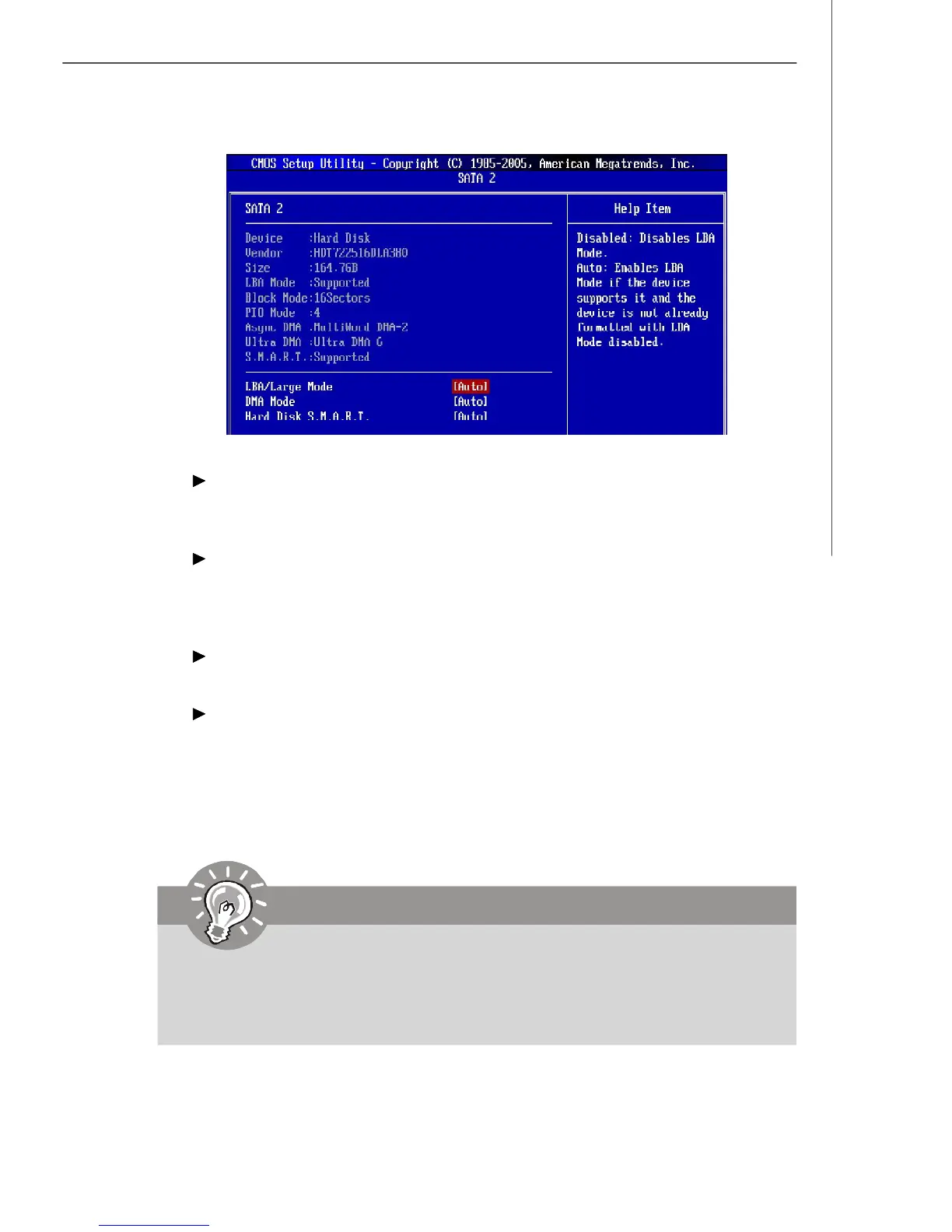 This allows you to enable or disable the LBA Mode. Setting to Auto enables LBA