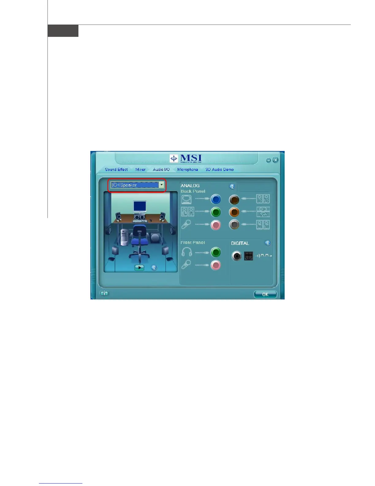 In this tab, you can easily configure your multi-channel audio function and speakers.