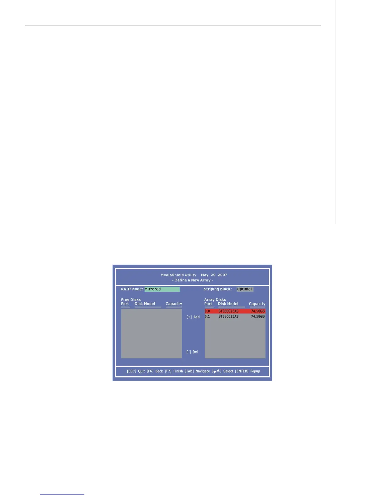 By default, this is set to [Mirroring]. To change to a different RAID mode, press the
