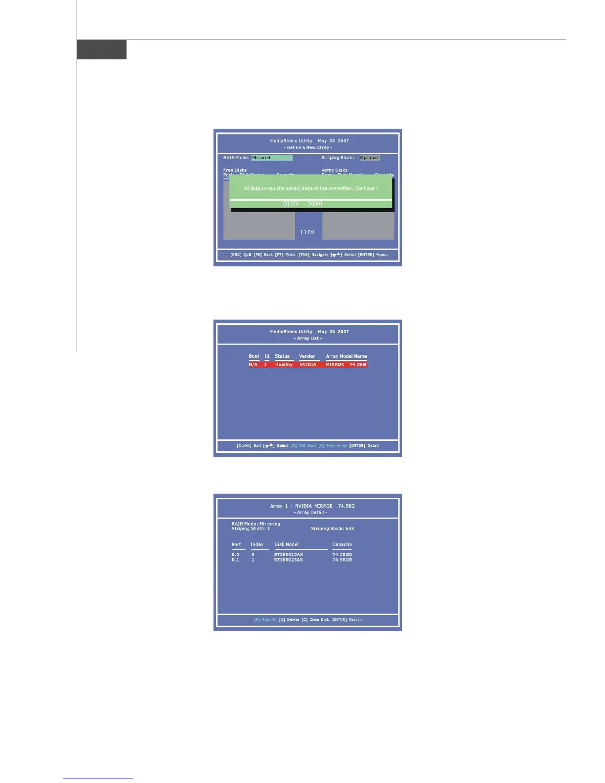 2.Press Y if you want to wipe out all the data from the RAID array, otherwise press