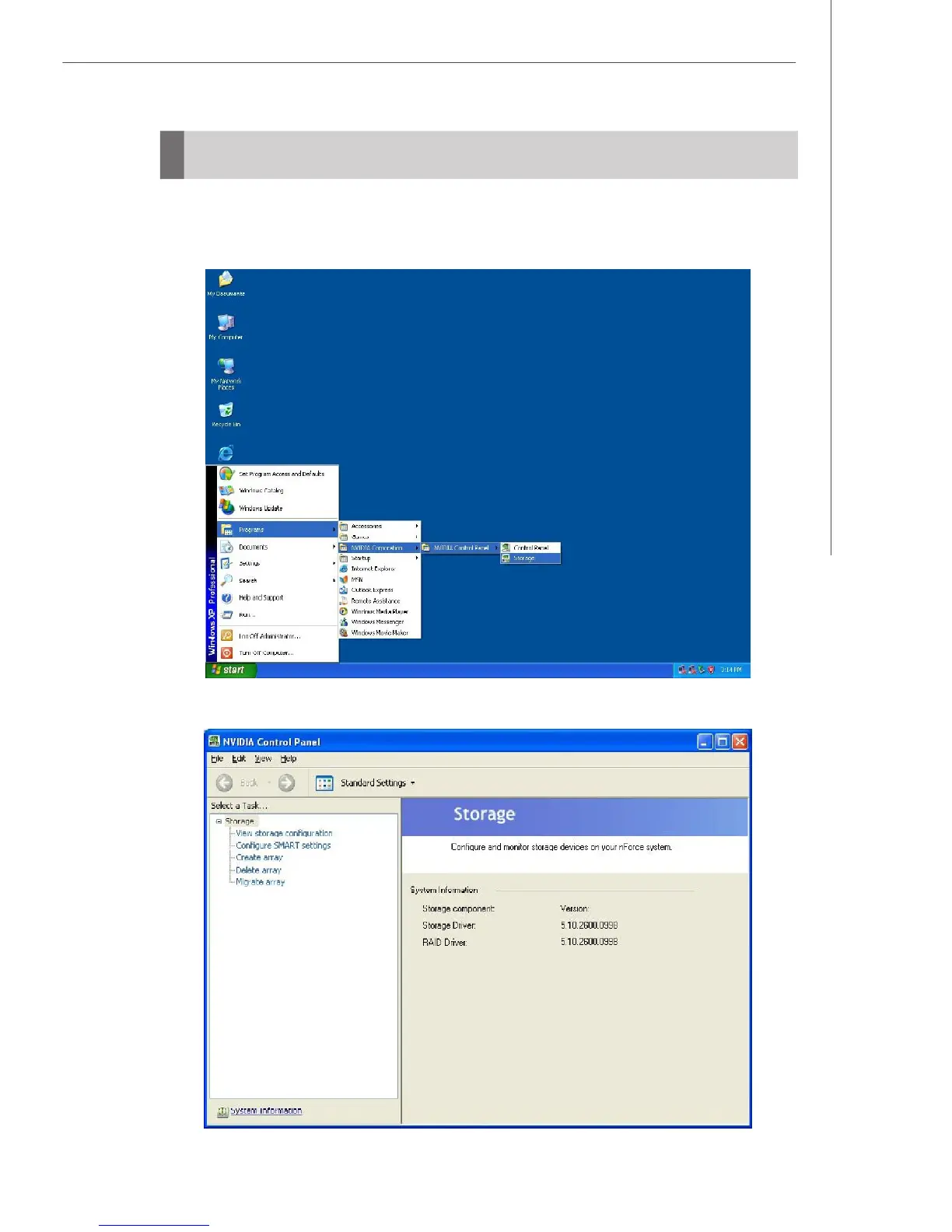 1.Click Star-> Programs-> NVIDIA Corporation-> NVIDIA Control Panel-> Storage.
