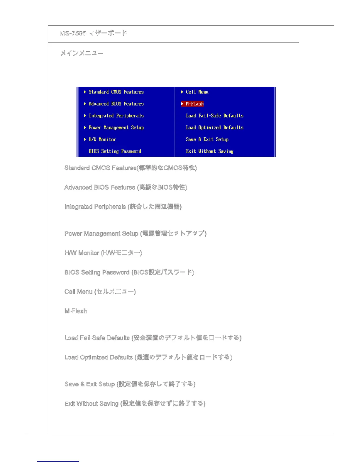 このメニューは記憶ドライブからBIOSフラッシュを行う際に使用します。(FAT/