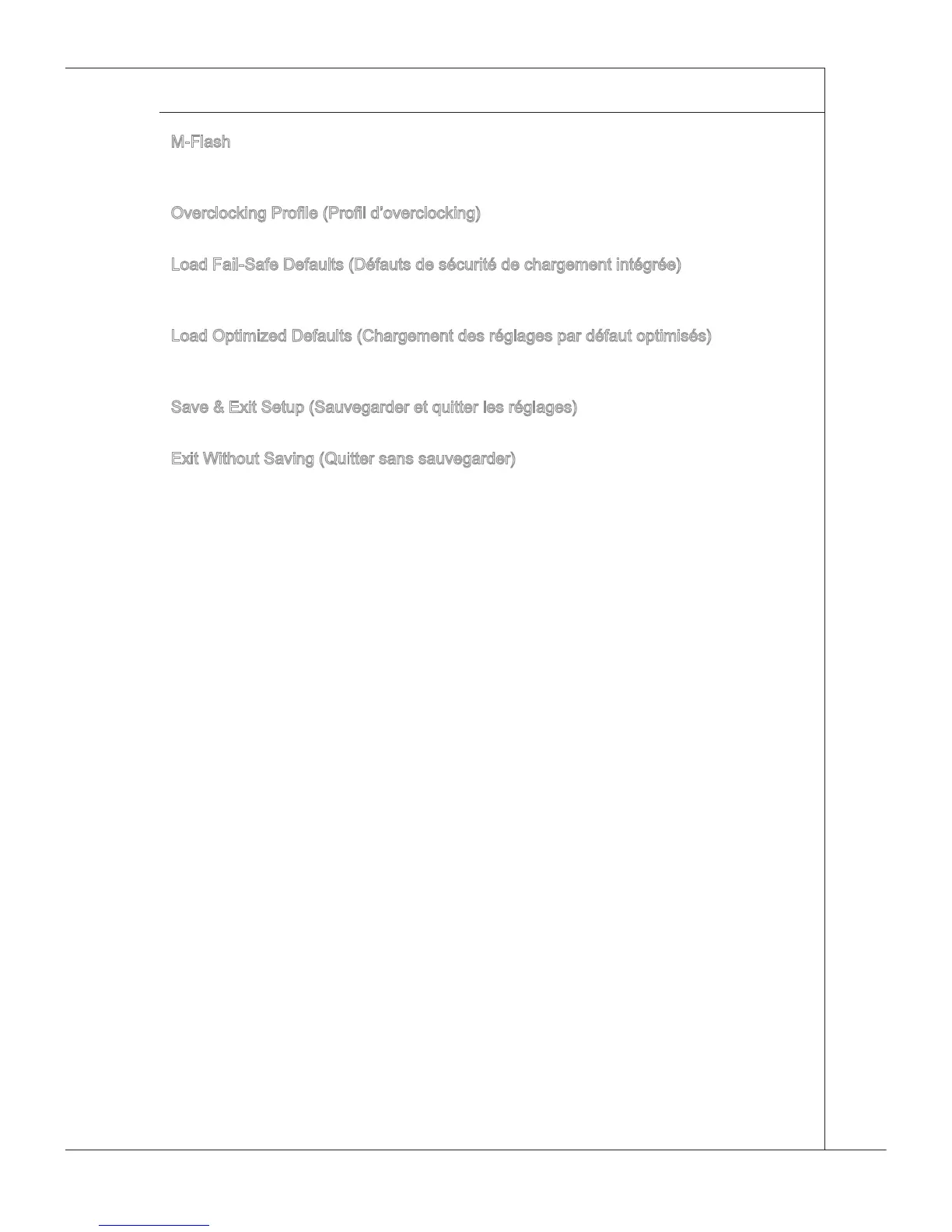 Utlsez ce menu pour charger les valeurs par défaut réglées par le fabrcant de la carte