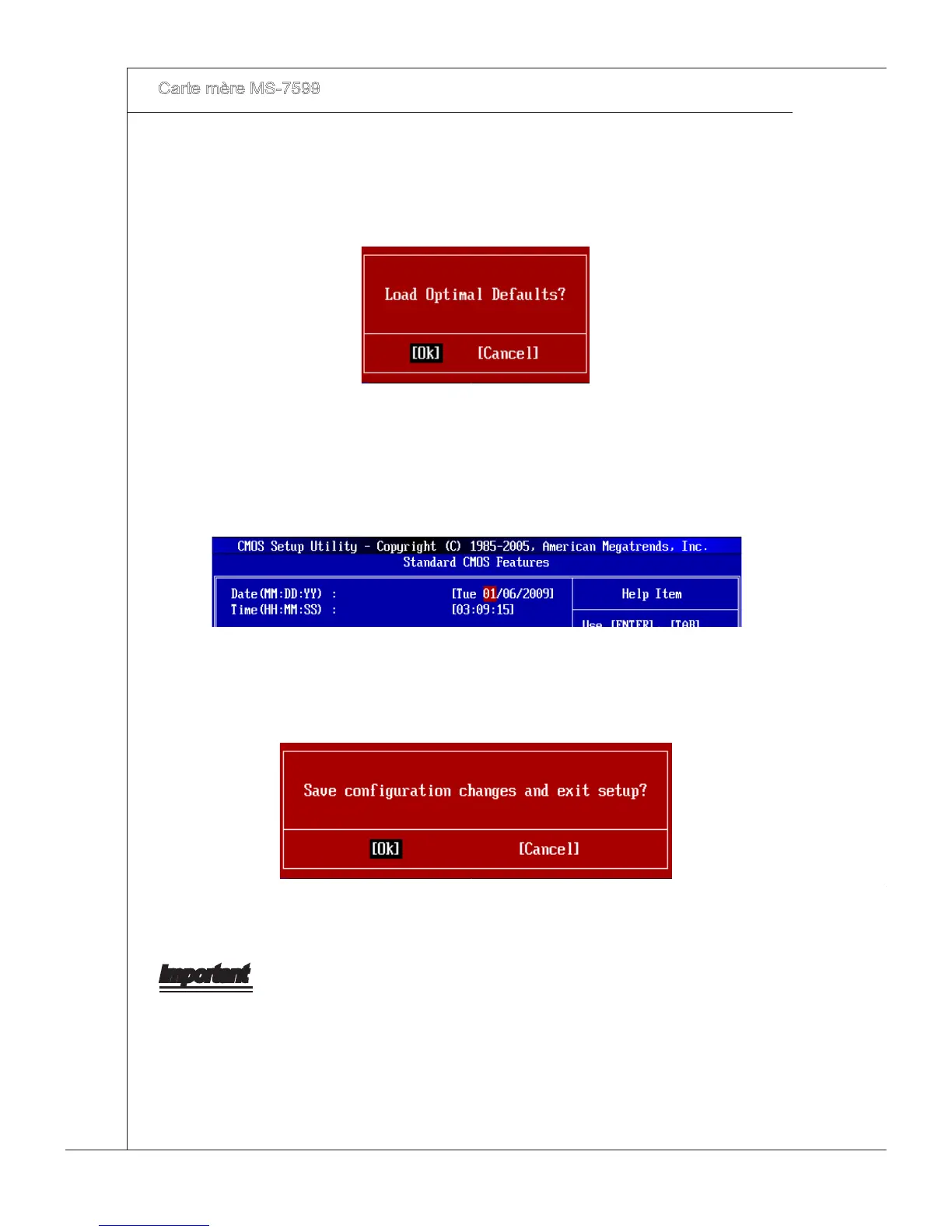 Setup Date/ Tme (Réglage de l’heure et de la date) : Chosssez Standard CMOS