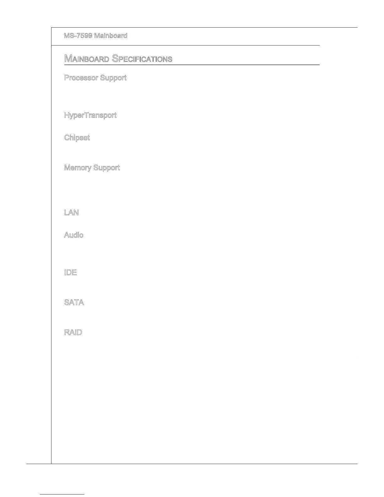 Mainboard SpecificationS