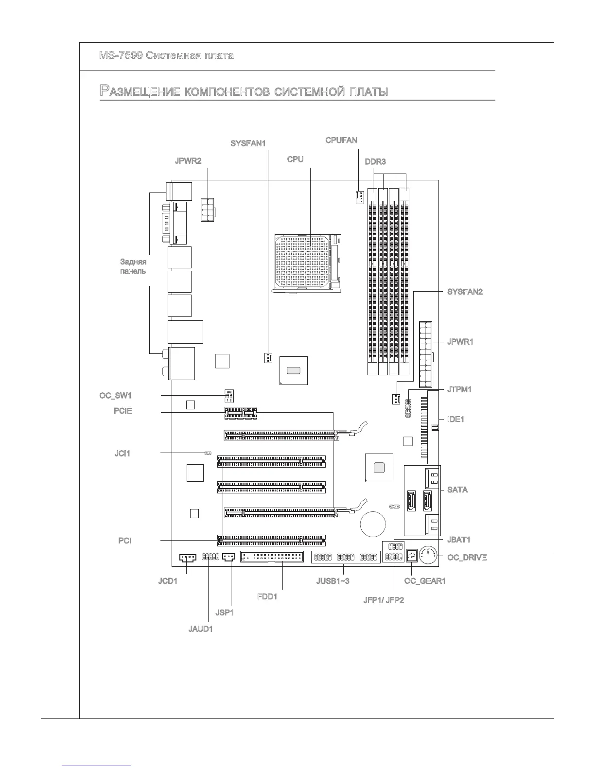 MSI MS-7599 - Размещение Компонентов Системной Платы