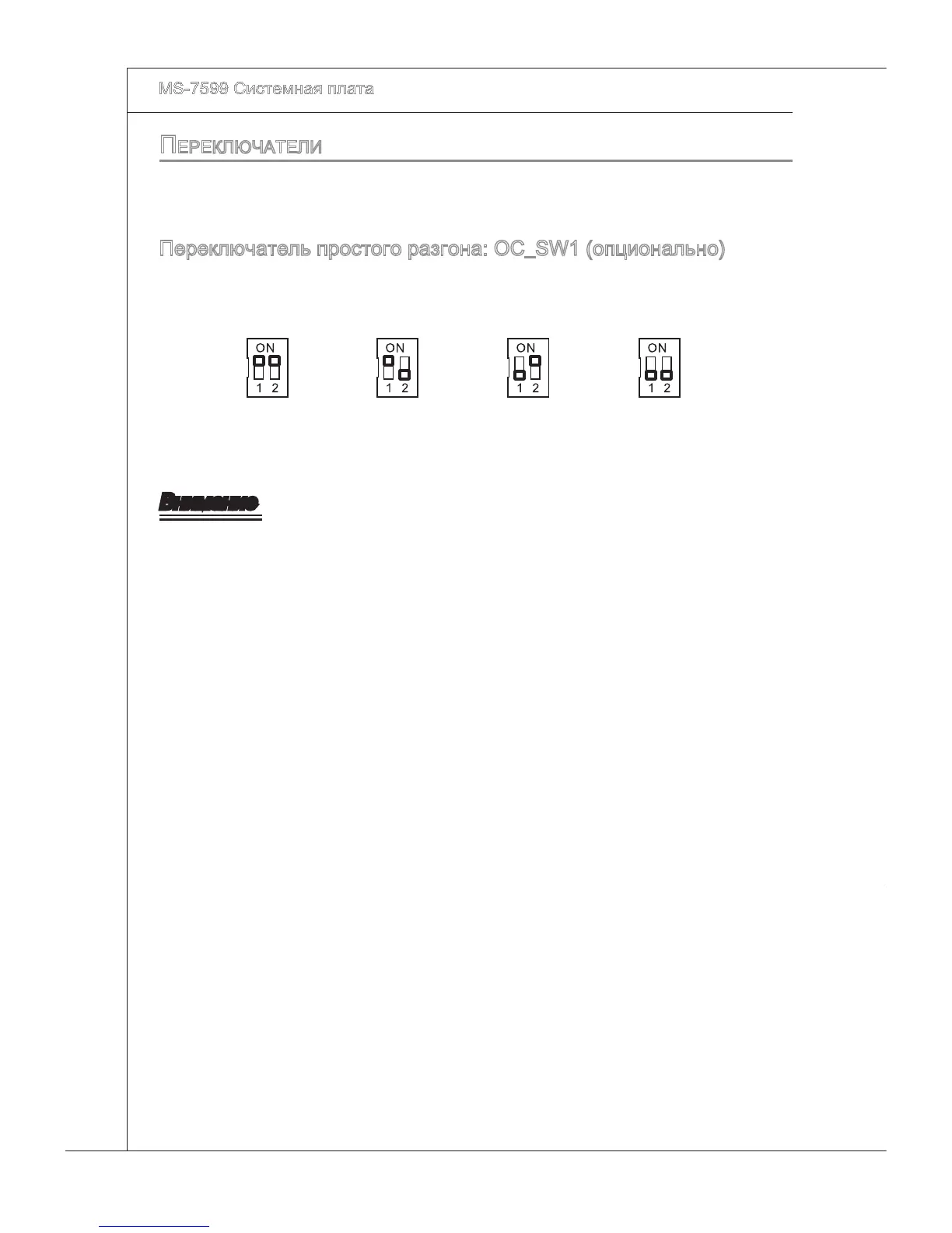 Переключатель простого разгона: OC_SW1 (опционально)