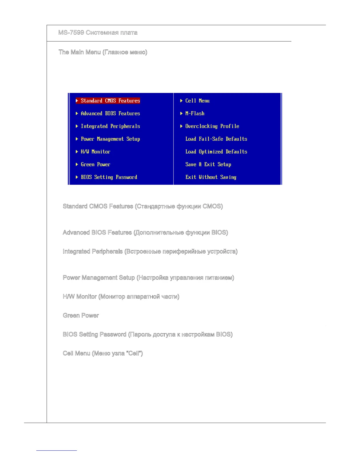 При входе в режим настройки BIOS на экране отображается Главное меню.