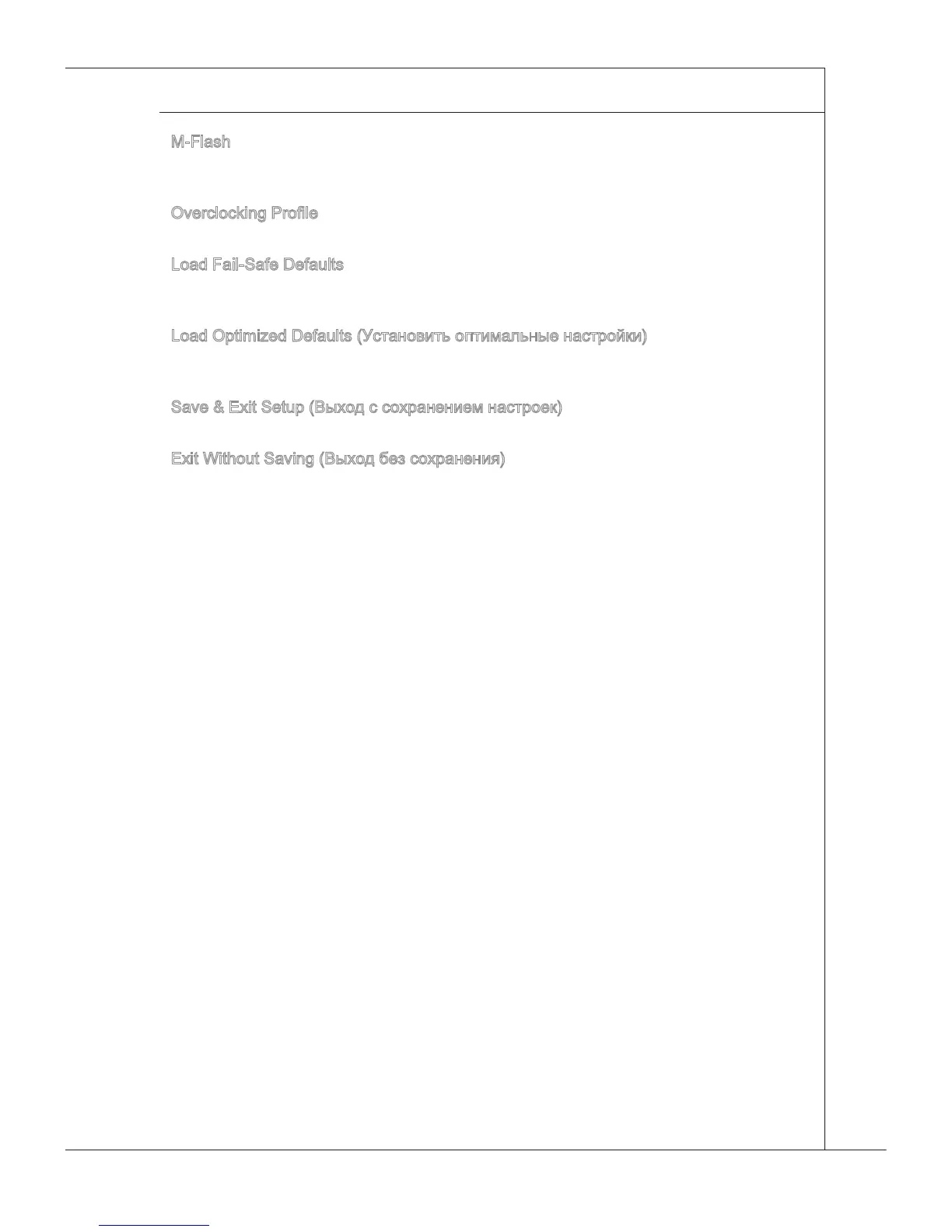 Это меню используется для загрузки значений BIOS, установленных