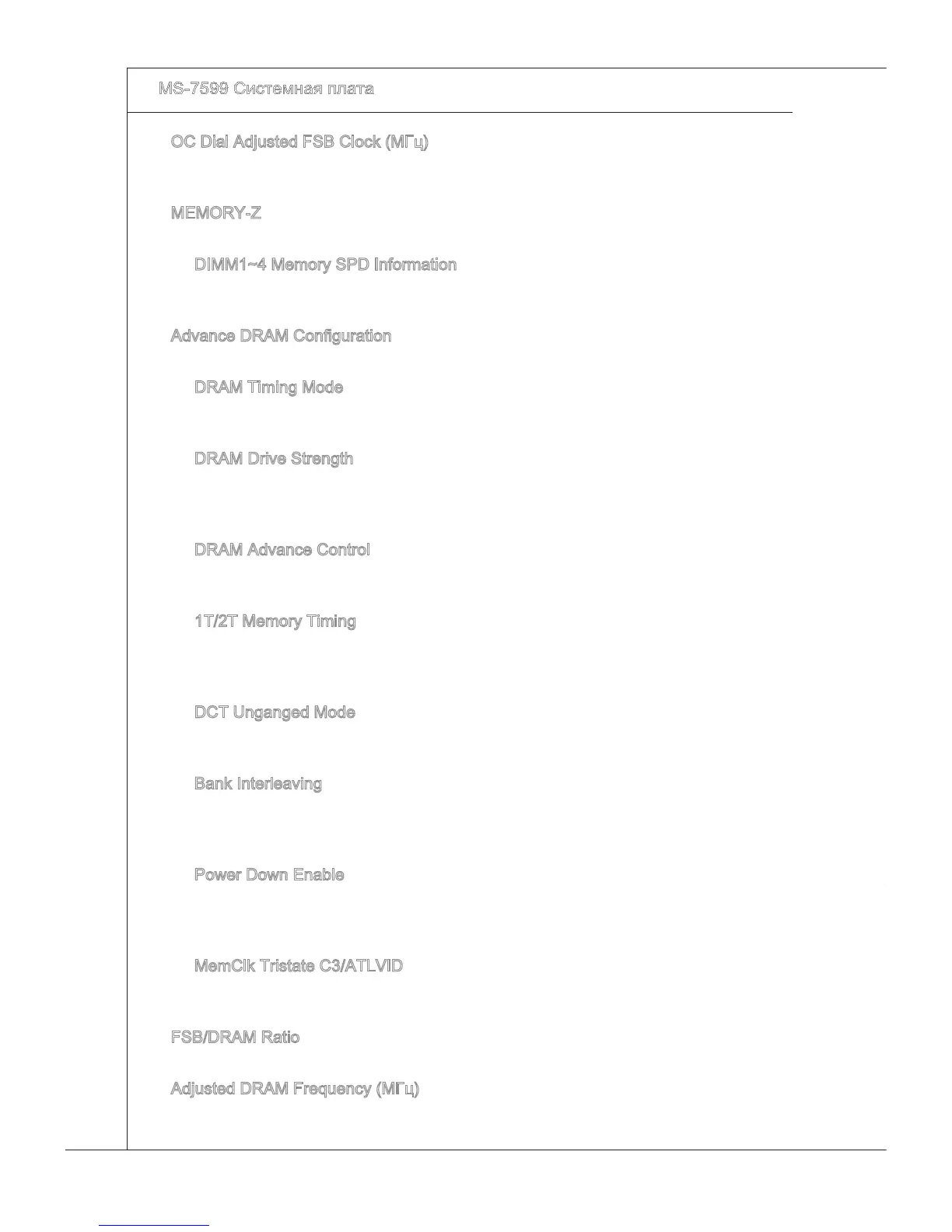 Этот пункт показывает текущую частоту памяти. Только для чтения.