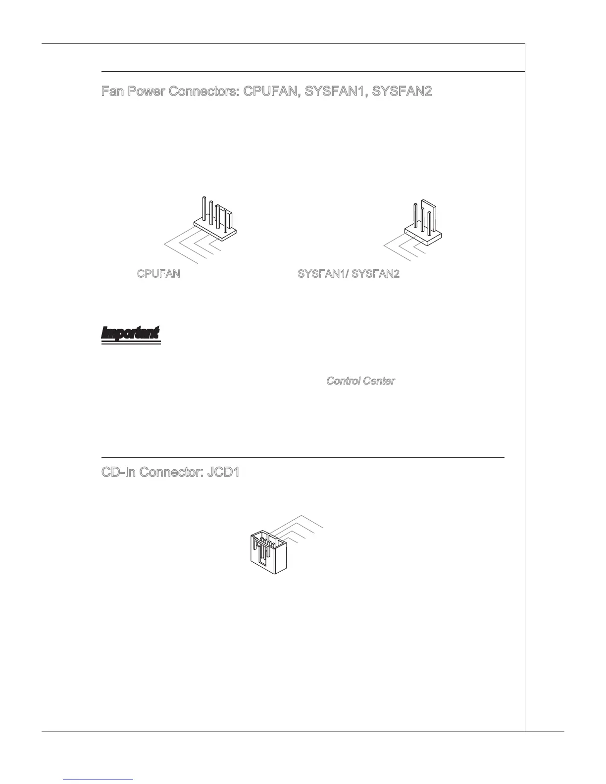 Fan Power Connectors: CPUFAN, SYSFAN1, SYSFAN2