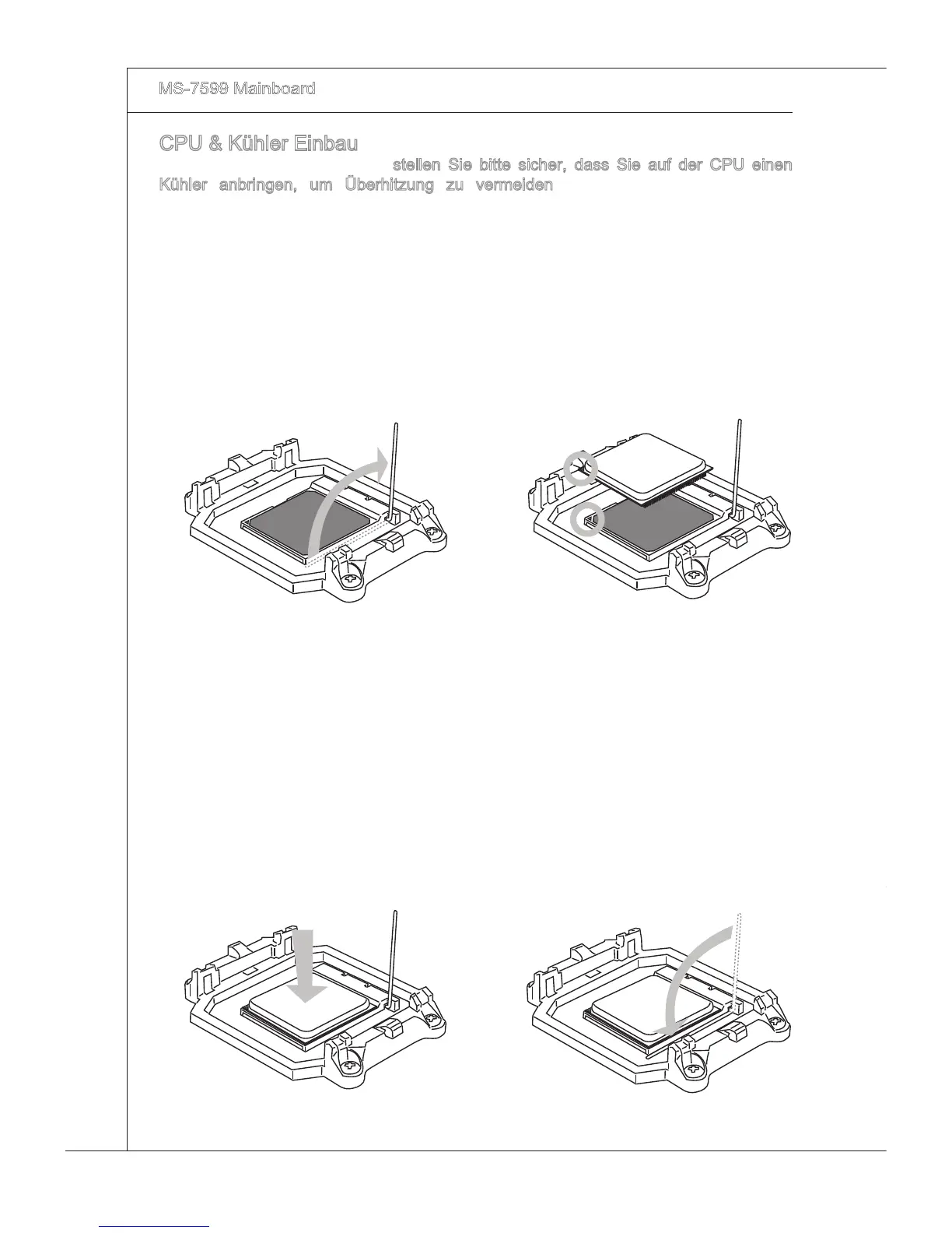 Folgen Se den Schrtten unten, um de CPU und den Kühler ordnungsgemäß zu