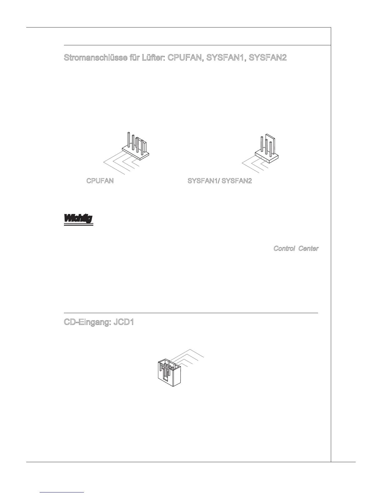 Stromanschlüsse für Lüfter: CPUFAN, SYSFAN1, SYSFAN2