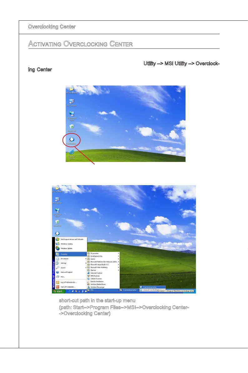 “Start-up” menu. You may double-clck on each con to actvate Overclockng Center.