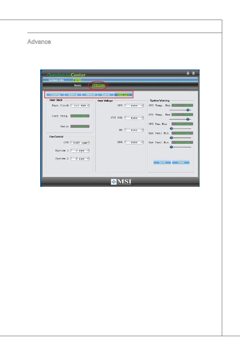 MSI MS-7602 - Overclocking Center - Advance Settings; Advance Overclocking Parameter Adjustments