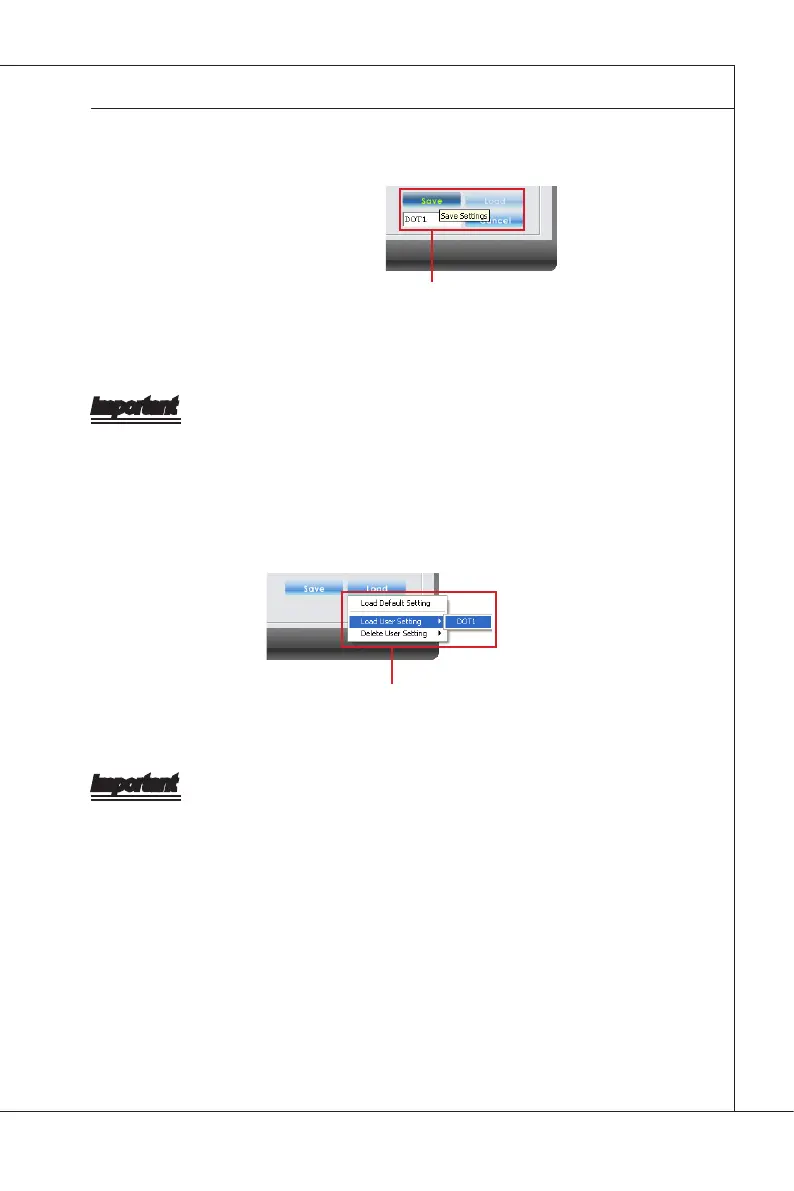 Clck the Load button and choose a saved user settng to load the settngs for the sys-