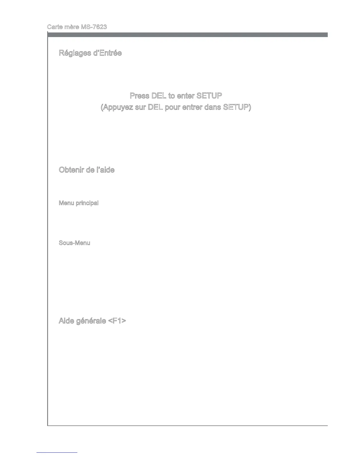 Le programme de réglages BIOS fournit un écran d’aide générale. Vous pouvez faire
