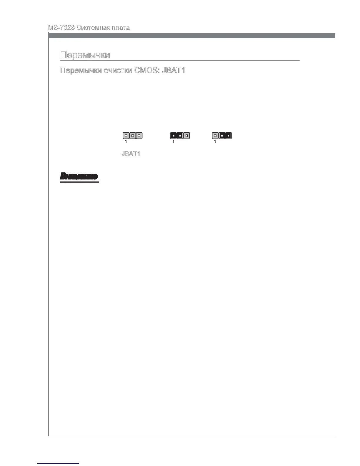 Перемычки очистки CMOS: JBAT1