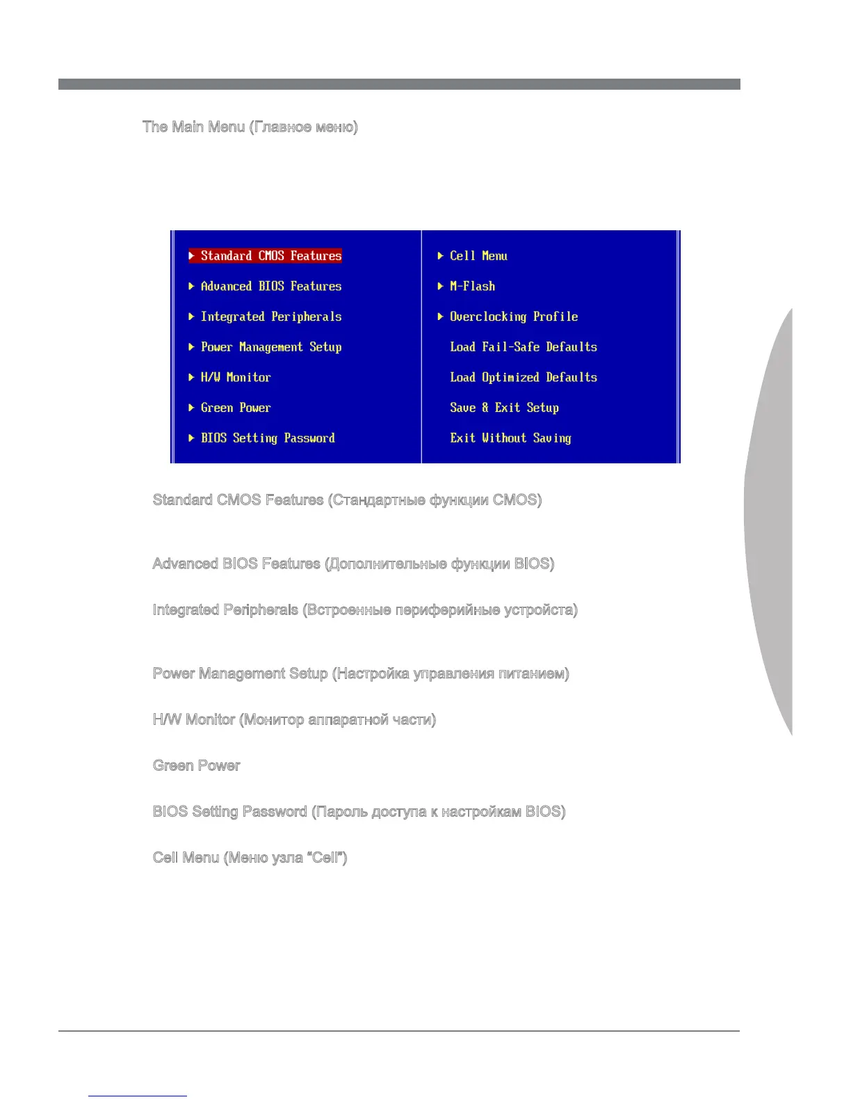 При входе в режим настройки BIOS на экране отображается Главное меню.