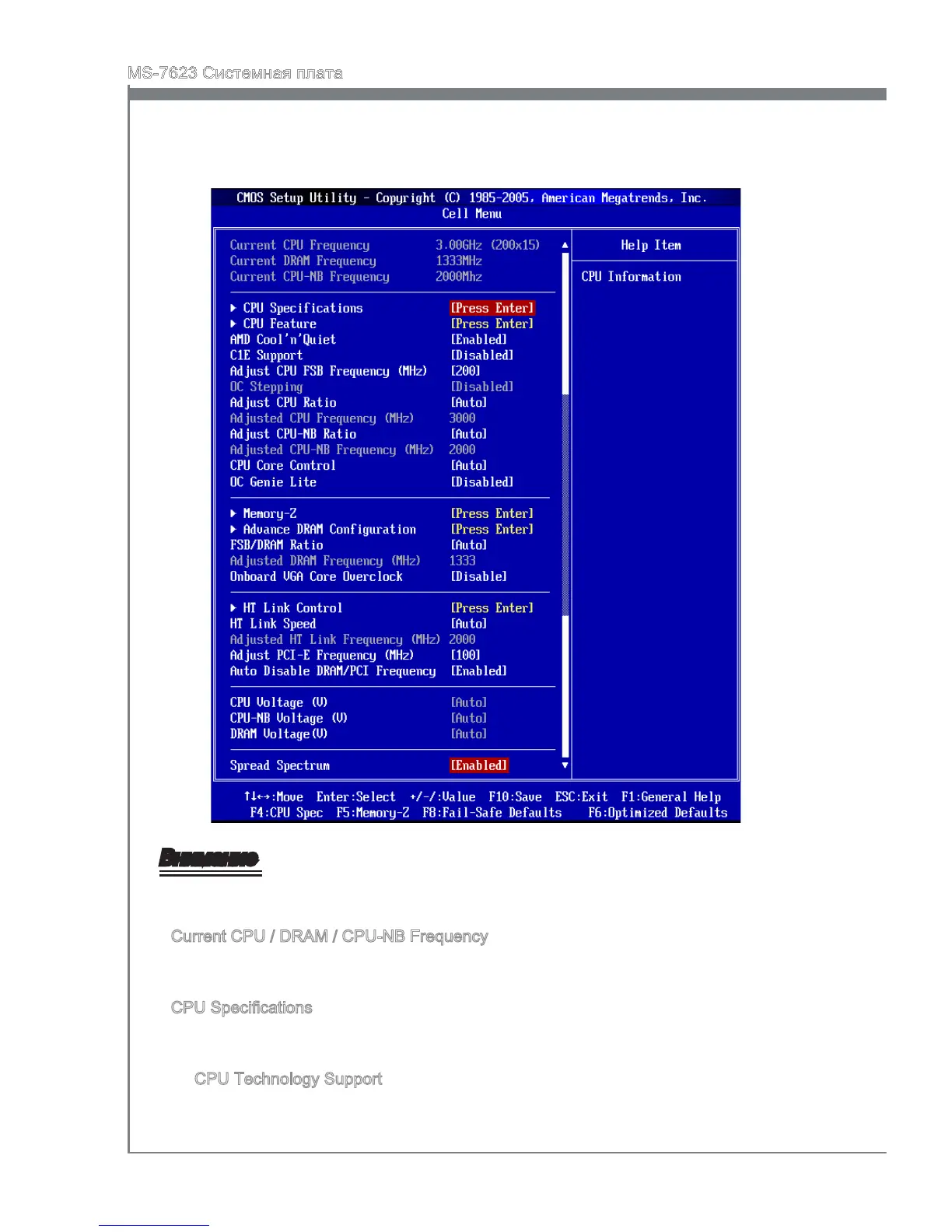 Эти пункты показывают текущую частоту CPU и скорость памяти и CPU-NB.