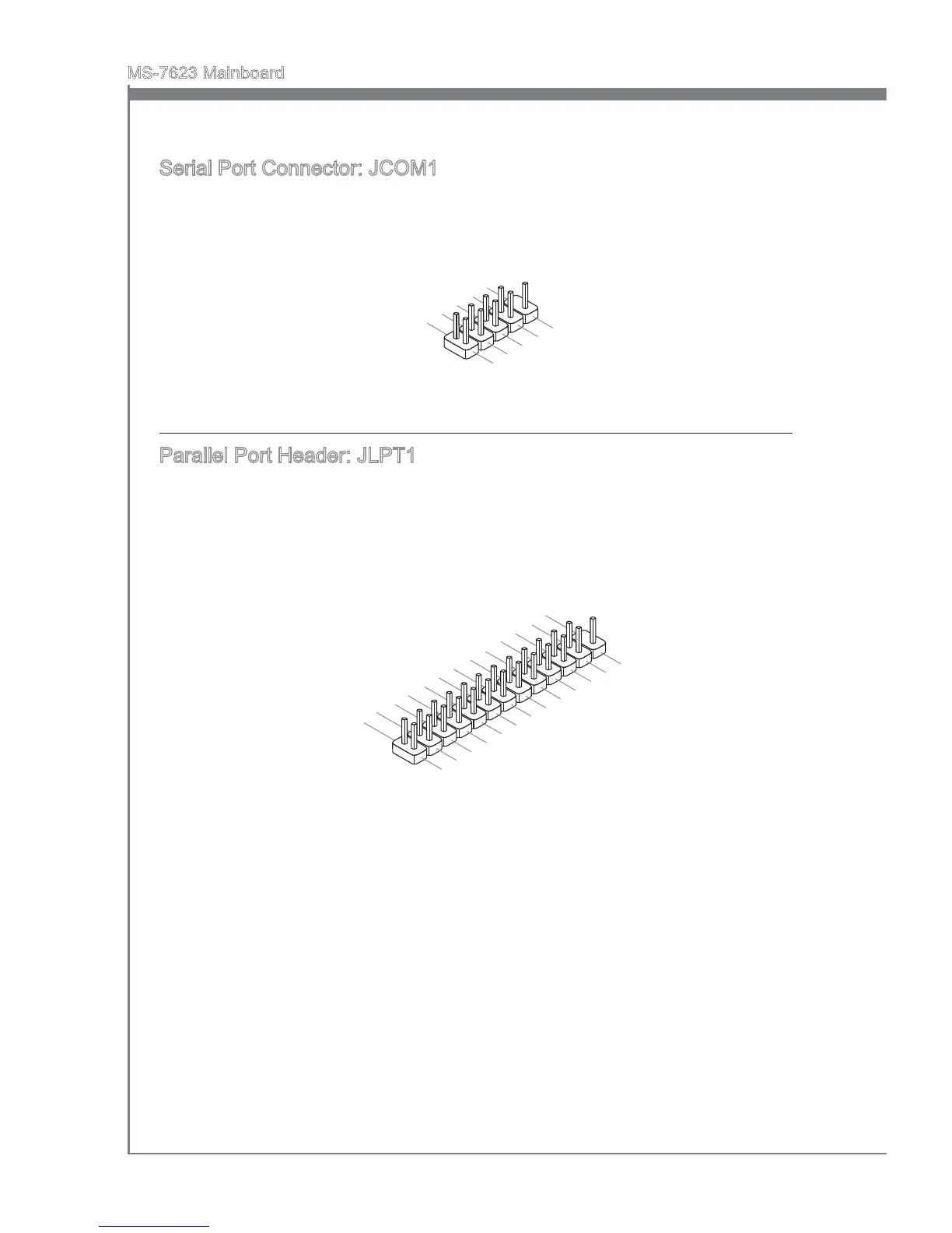This connector is used to connect an optional parallel port bracket. The parallel port is a