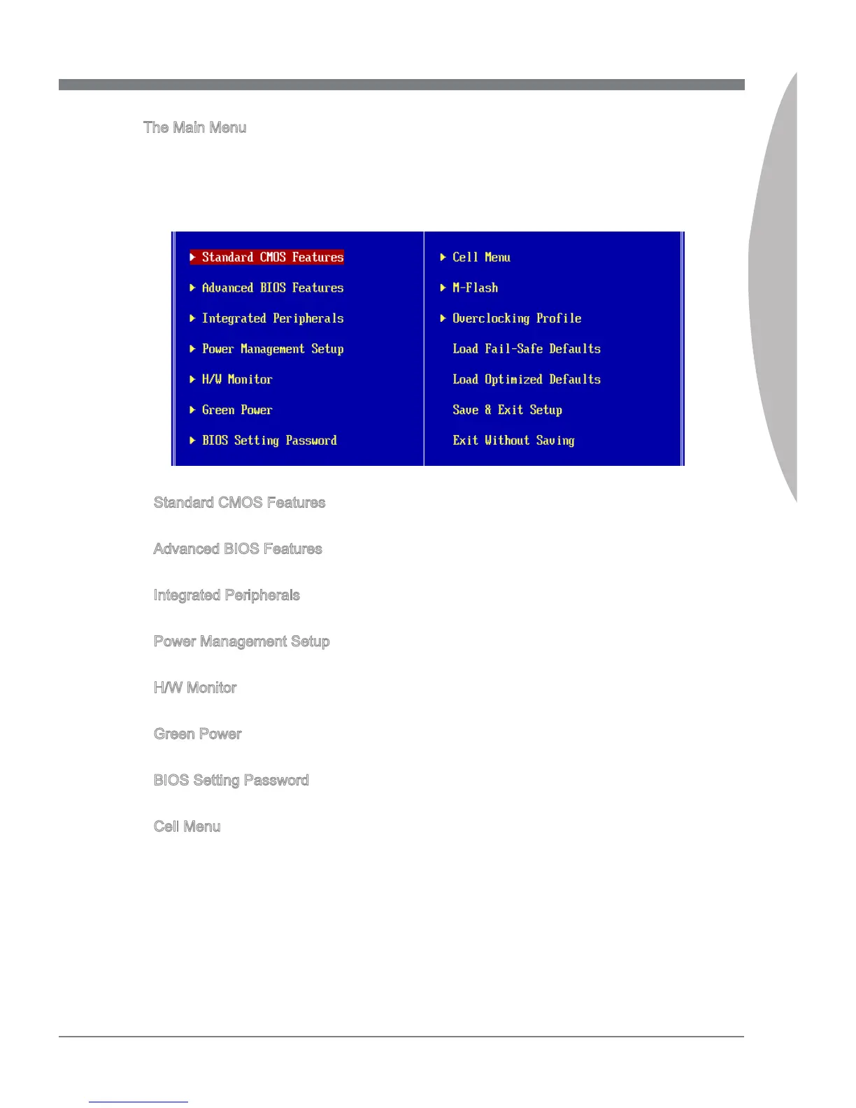 Once you enter BIOS CMOS Setup Utility, the Main Menu will appear on the screen.