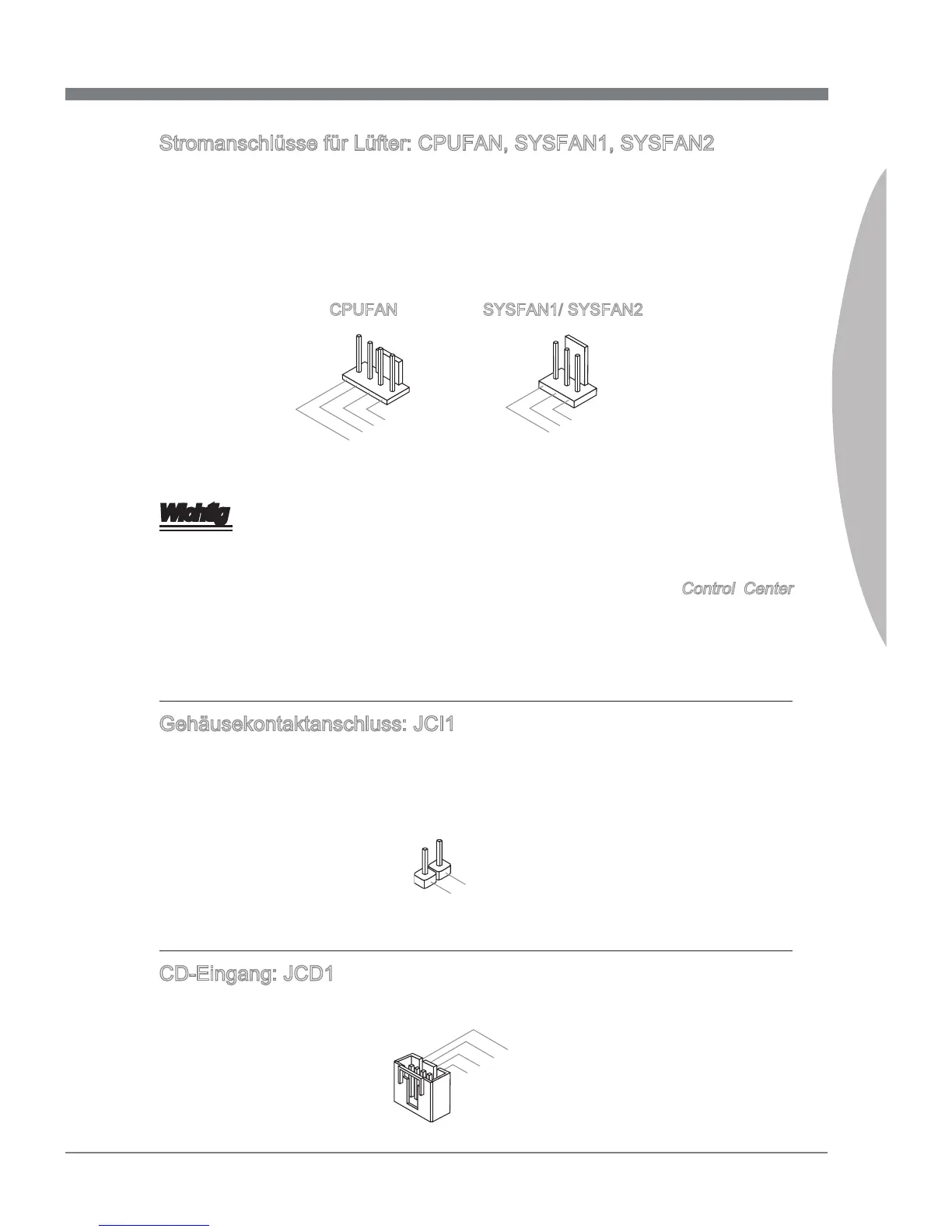 Stromanschlüsse für Lüfter: CPUFAN, SYSFAN1, SYSFAN2