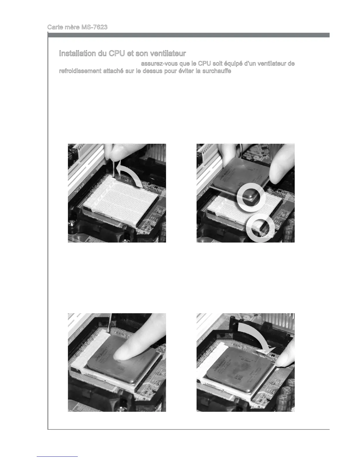 Suivez les instruction suivantes pour installer le CPU et son ventilateur correctement.