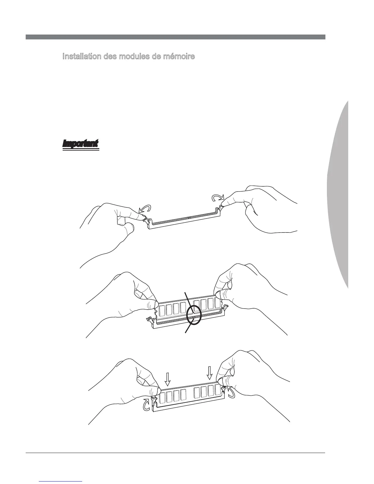 suite jusqu’à l’extrémité dorée du module de mémoire, soit profondément insérée
