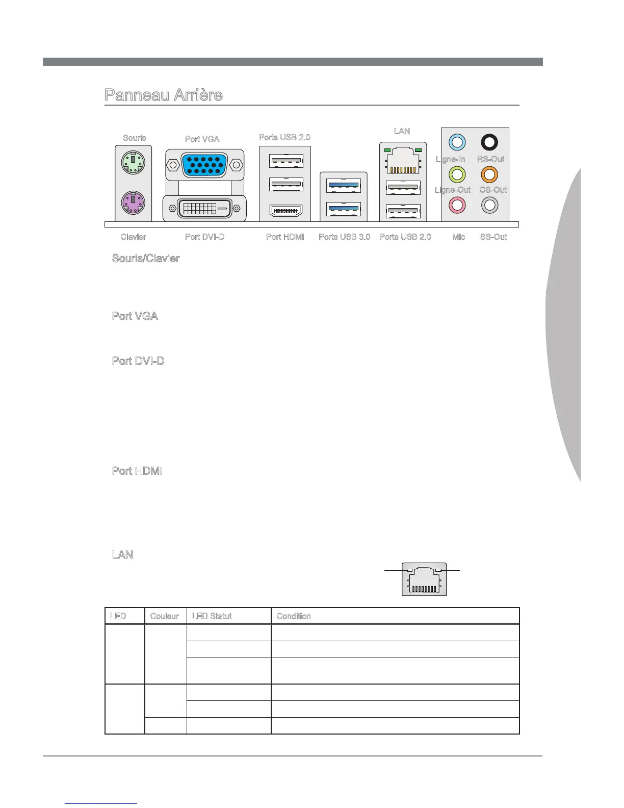 Gauche Jaune Eteinte La connexion au réseau LAN n’est pas établie.