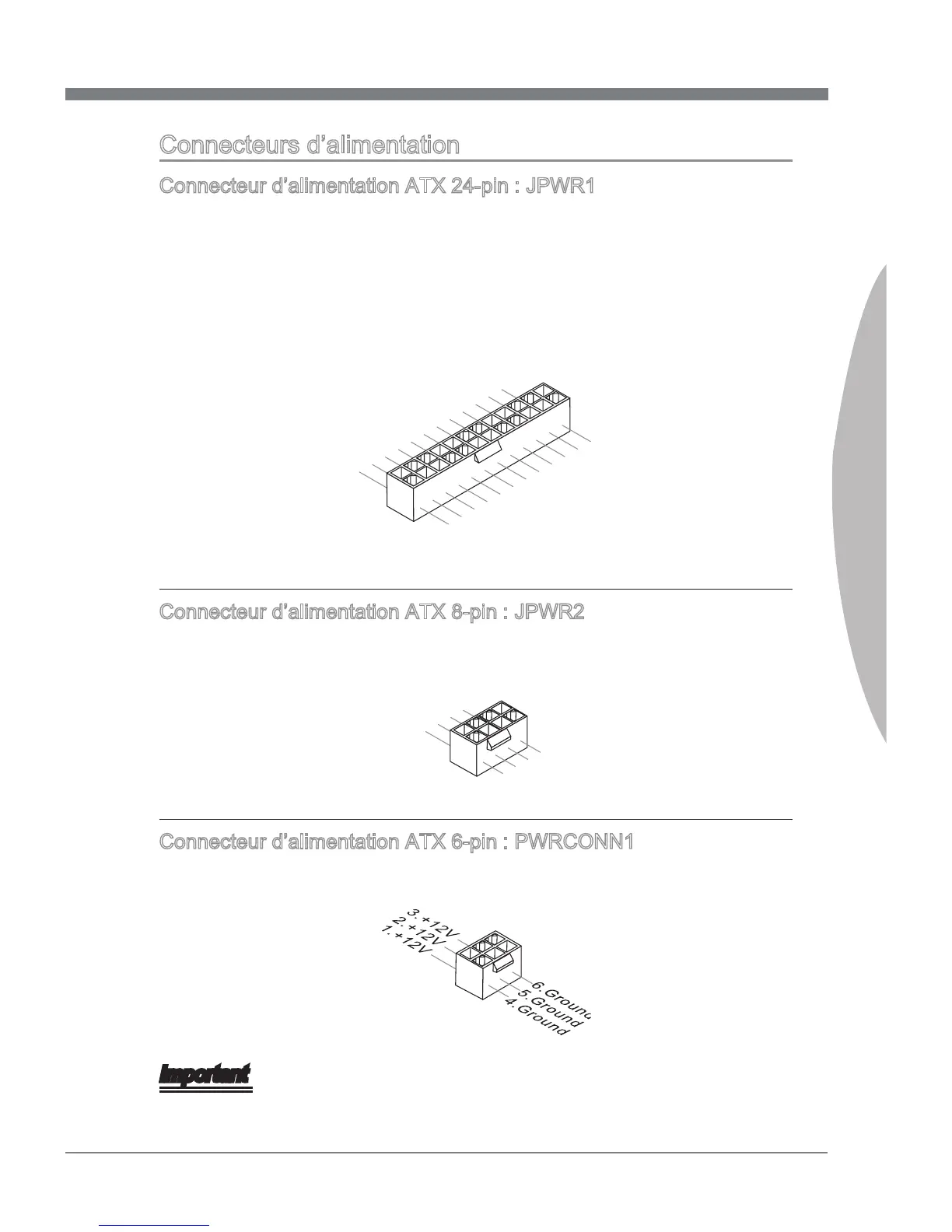 Vous pourvez aussi utiliser un alimentation 20-pin selon vos besoins. Veuillez brancher