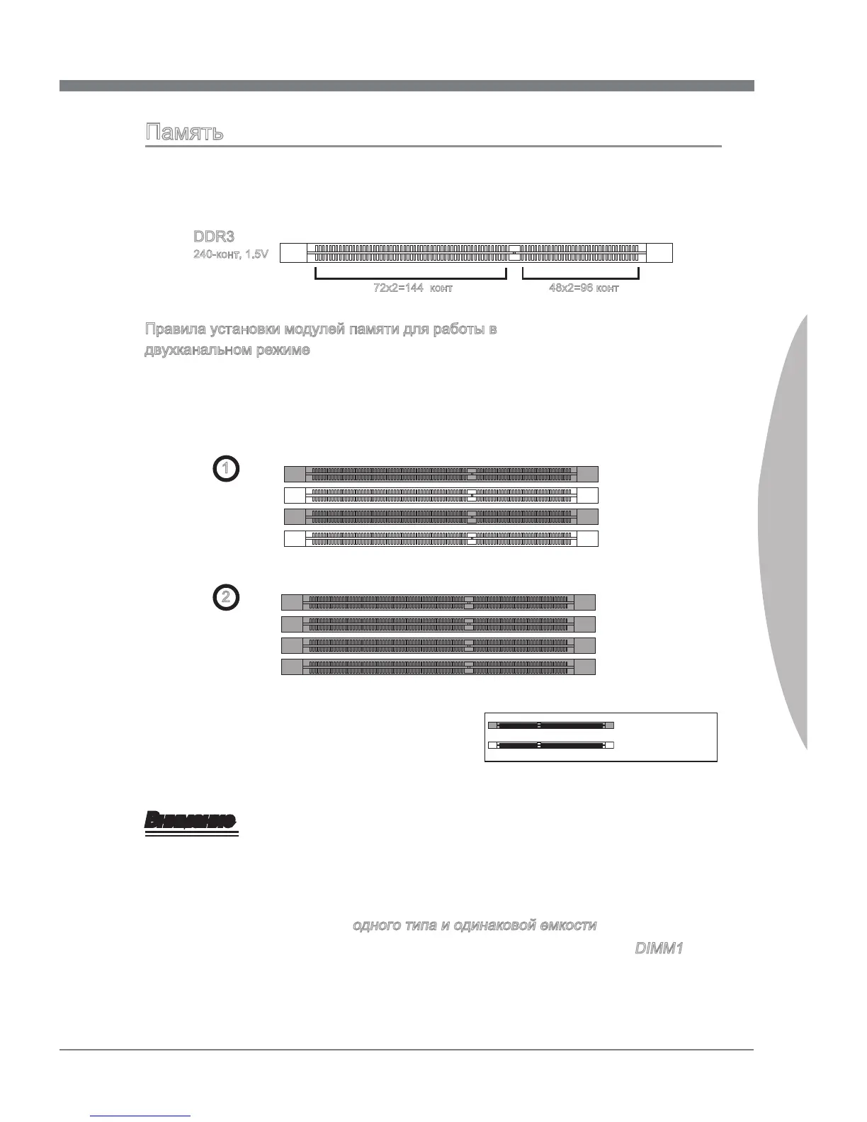 Чтобы система загрузилась, вначале установите модули в разъем DIMM1.