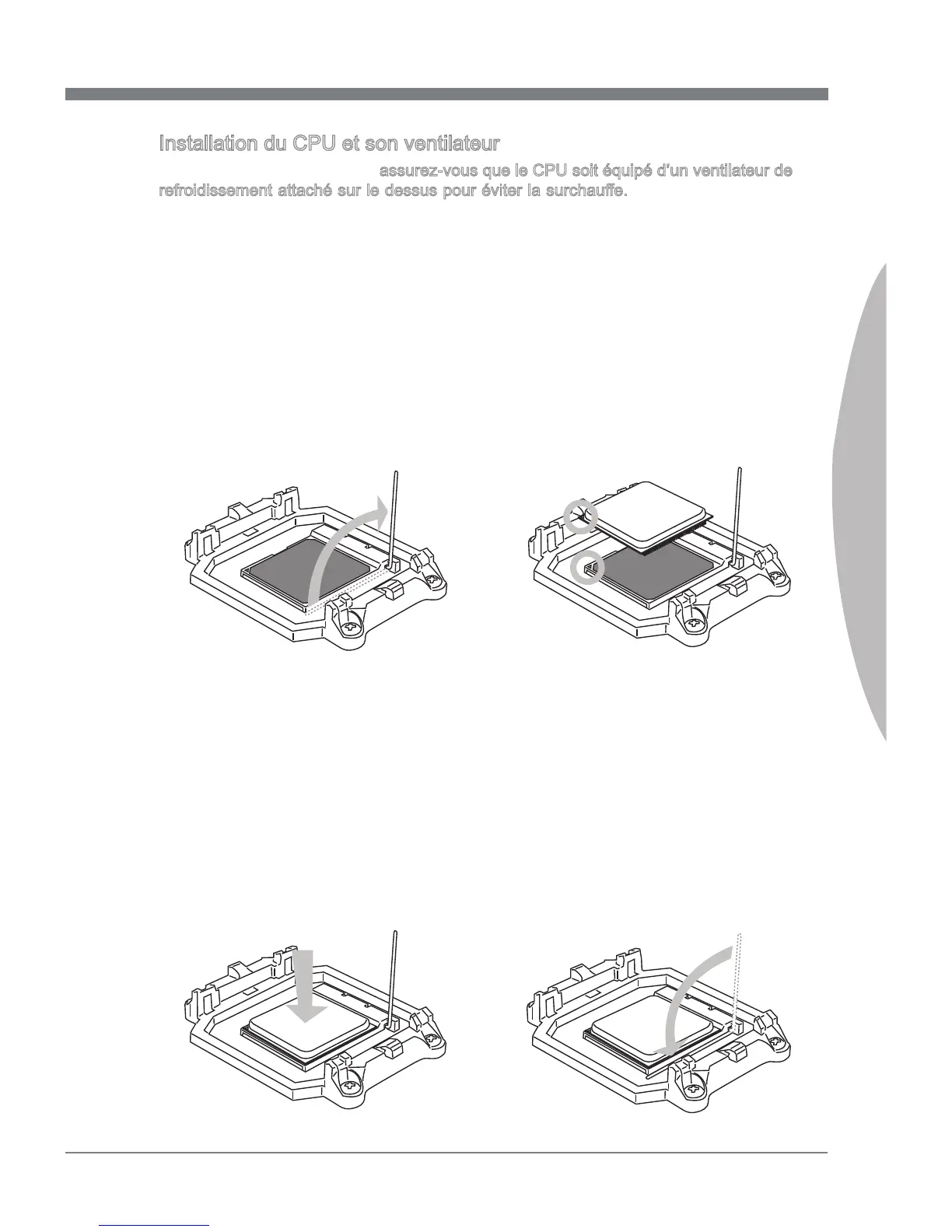 Quand vous nstallez le CPU, assurez-vous que le CPU sot équpé d’un ventlateur de