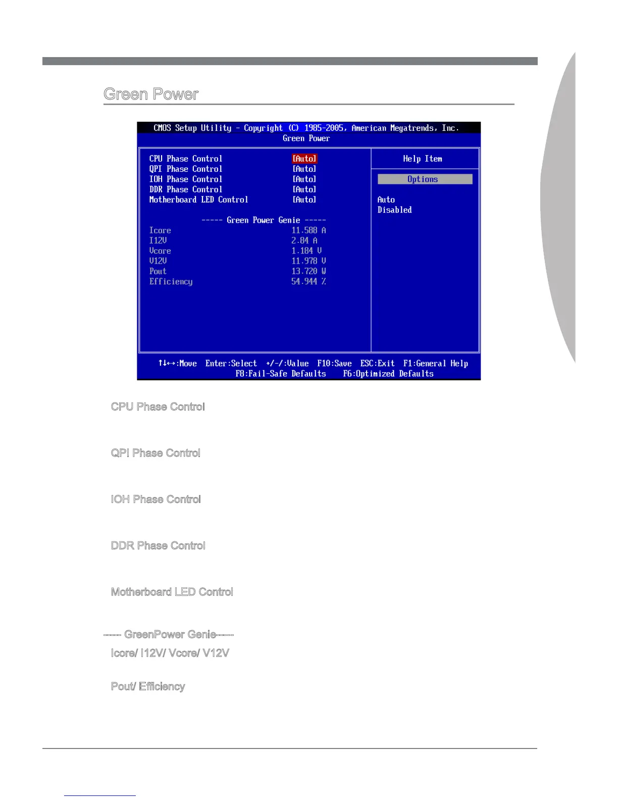 When set to [Auto], the hardware will auto adjust the IOH power phase according to the