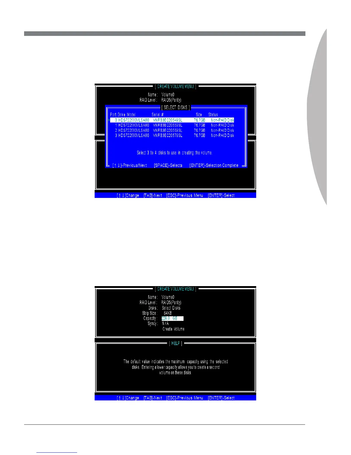 key to select the disks you want to create for the RAID volume, then click <Enter>