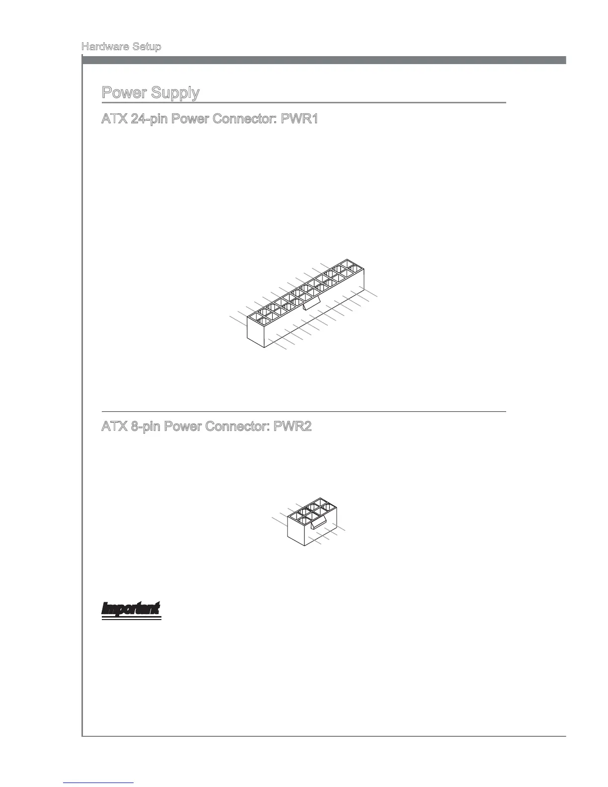 24-pin power supply, make sure the plug of the power supply is inserted in the proper