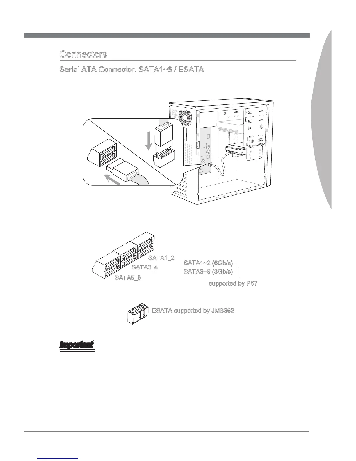 Serial ATA Connector: SATA1~6 / ESATA