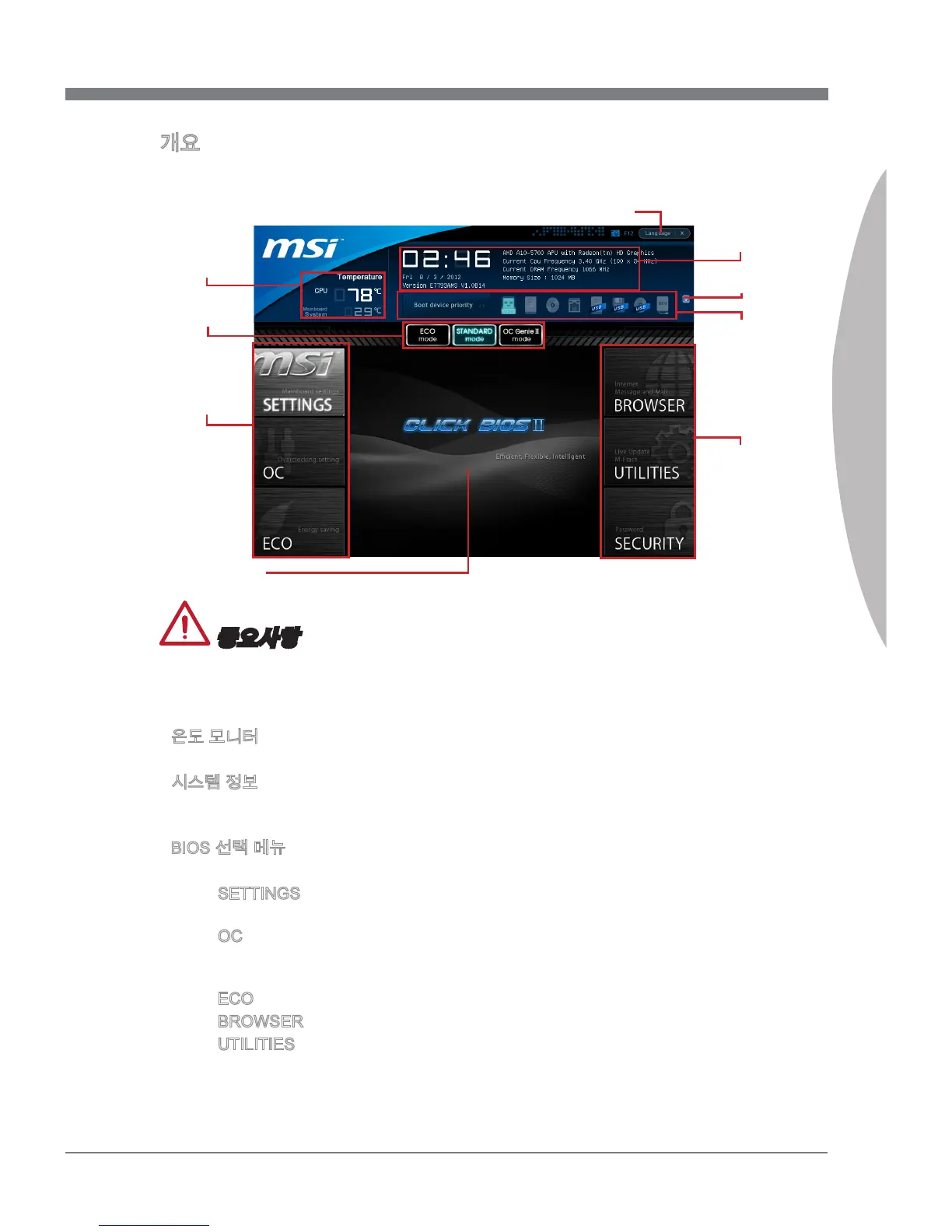 CLICK BIOS II를 시작하면 아래의 화면이 표시됩니다.