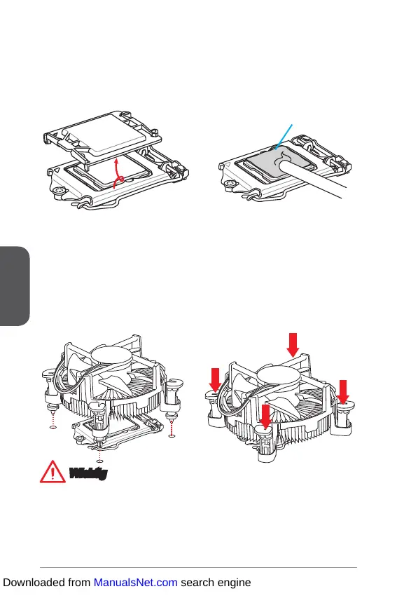 8. Setzen Sie den Kühlkörper auf die CPU und beachten Sie die Übereinstimmung