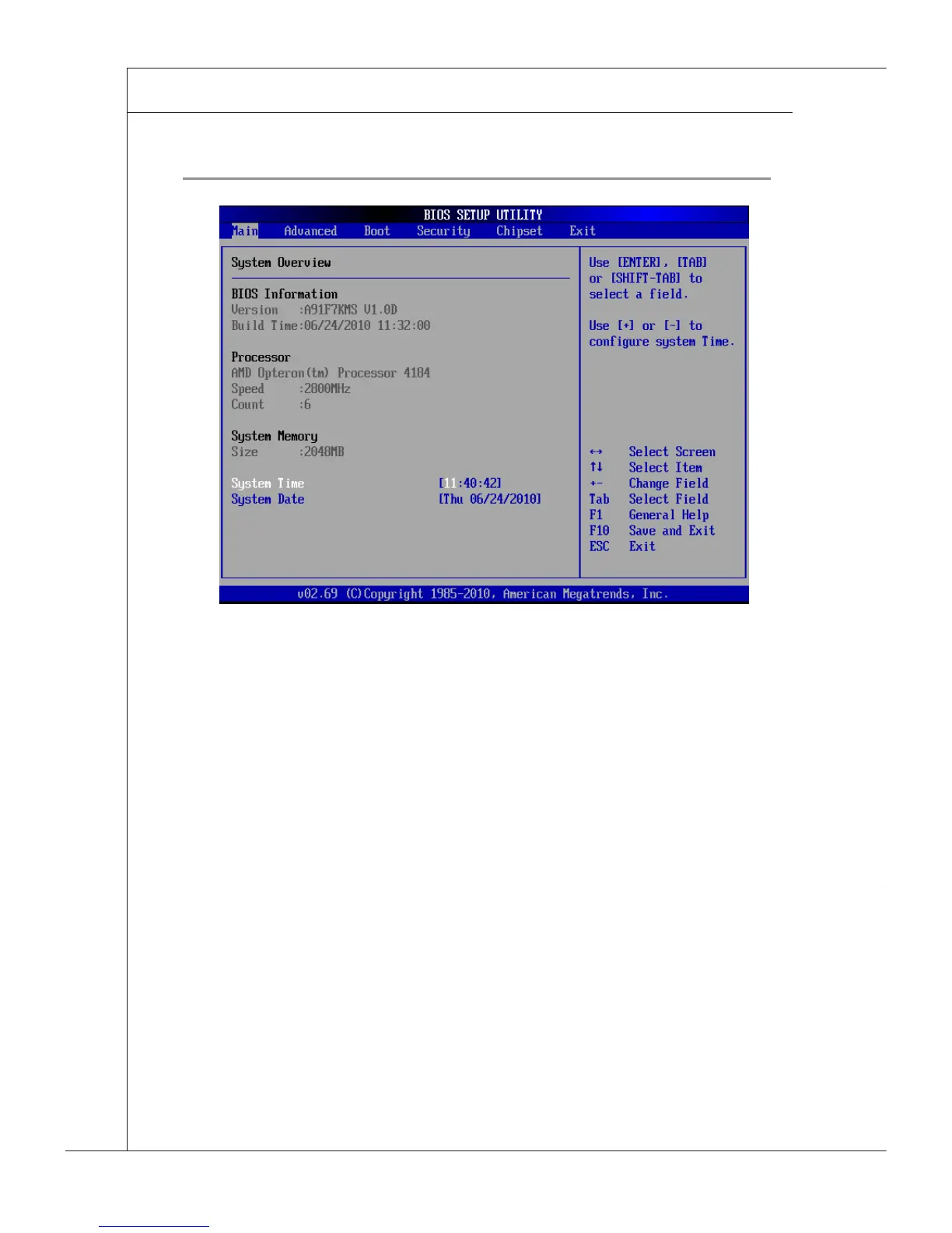 into the BIOS and exit the BIOS setup utility with or without changes.